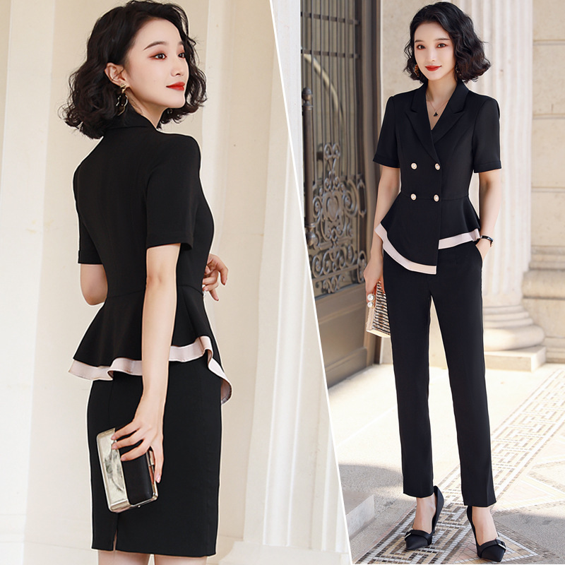 Setelan pakaian wanita lengan pendek profesional kelas atas toko perhiasan salon kecantikan pakaian kerja ahli hotel meja depan baju kerja