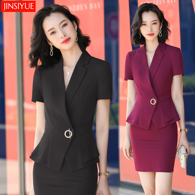 Setelan profesional pakaian kerja wanita setelan lengan pendek musim panas rok modis ahli perhiasan toko baju kerja pakaian formal temperamen