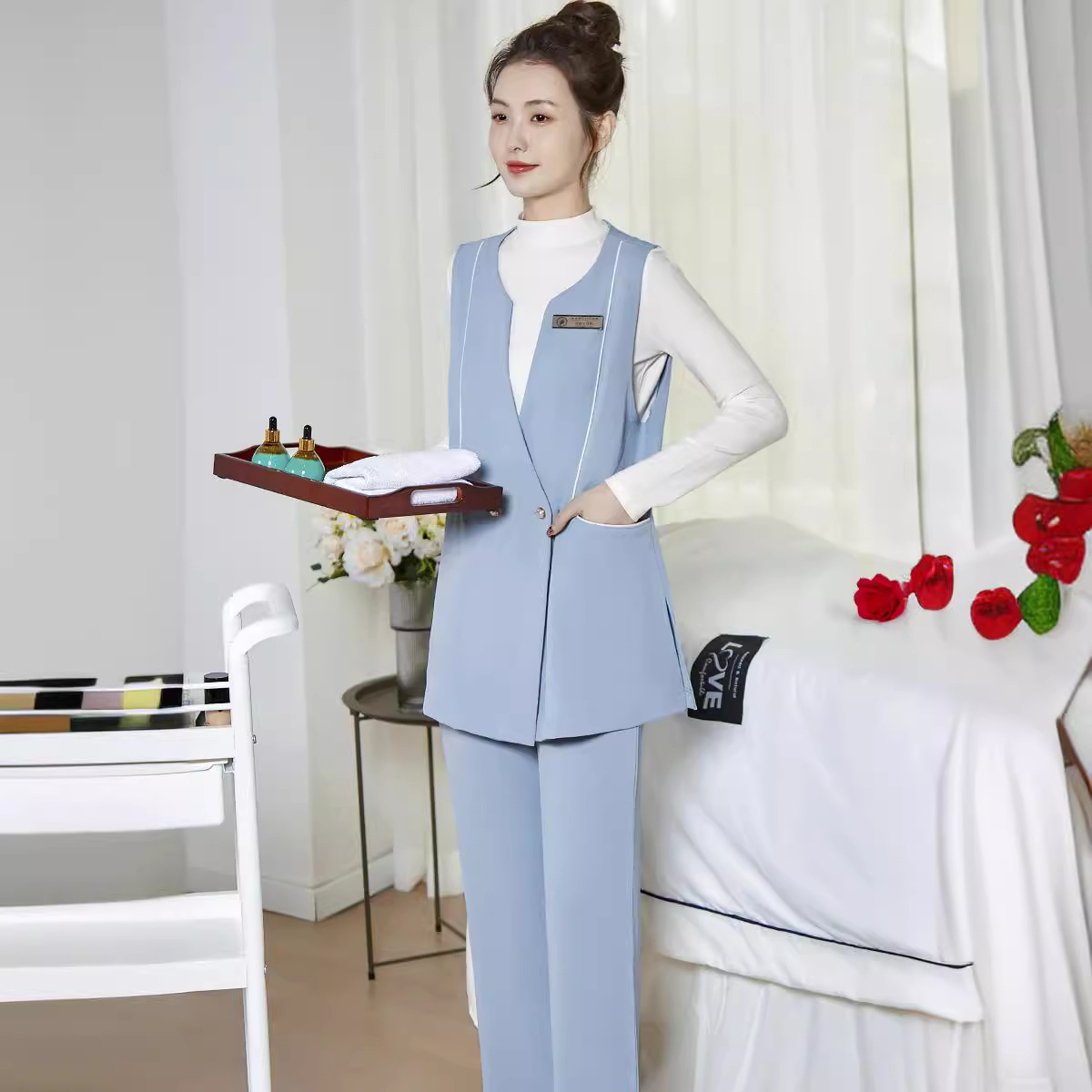 Musim semi dan musim gugur baru elegan ahli kesehatan klub pedikur pijat kaki teknisi pakaian kerja wanita high-end salon kecantikan setelan