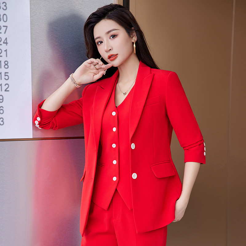 Setelan merah setelan profesional temperamen wanita high-end Medis Kecantikan meja depan pakaian kerja resepsi toko perhiasan ahli kecantikan pakaian kerja