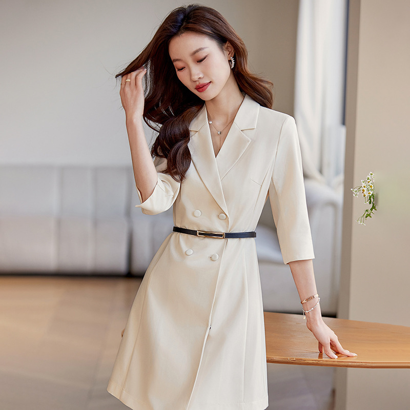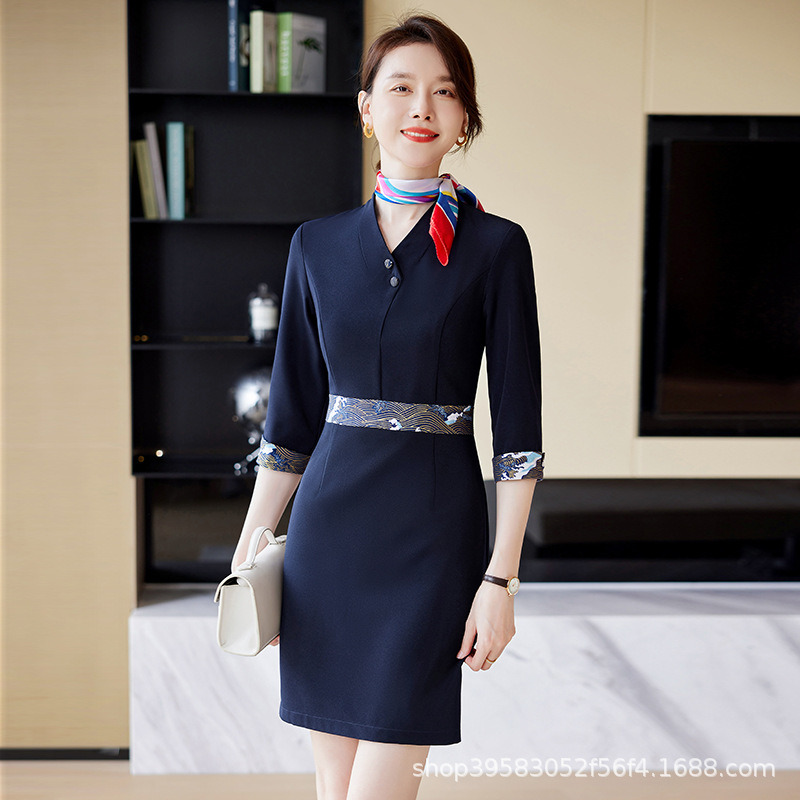 Setelan pakaian bisnis wanita lengan pendek gaun toko emas kelas atas toko perhiasan elegan slim-fit hotel meja depan ahli kecantikan