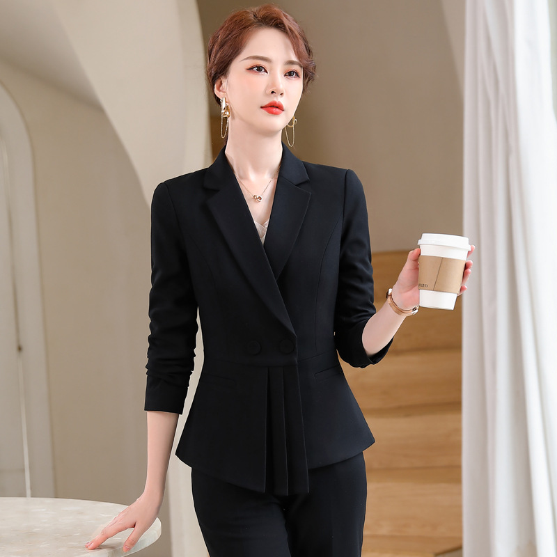 Setelan profesional setelan hitam wanita pakaian kerja hotel baru pakaian kerja ahli kecantikan pakaian kerja wanita perguruan tinggi LOGO grosir