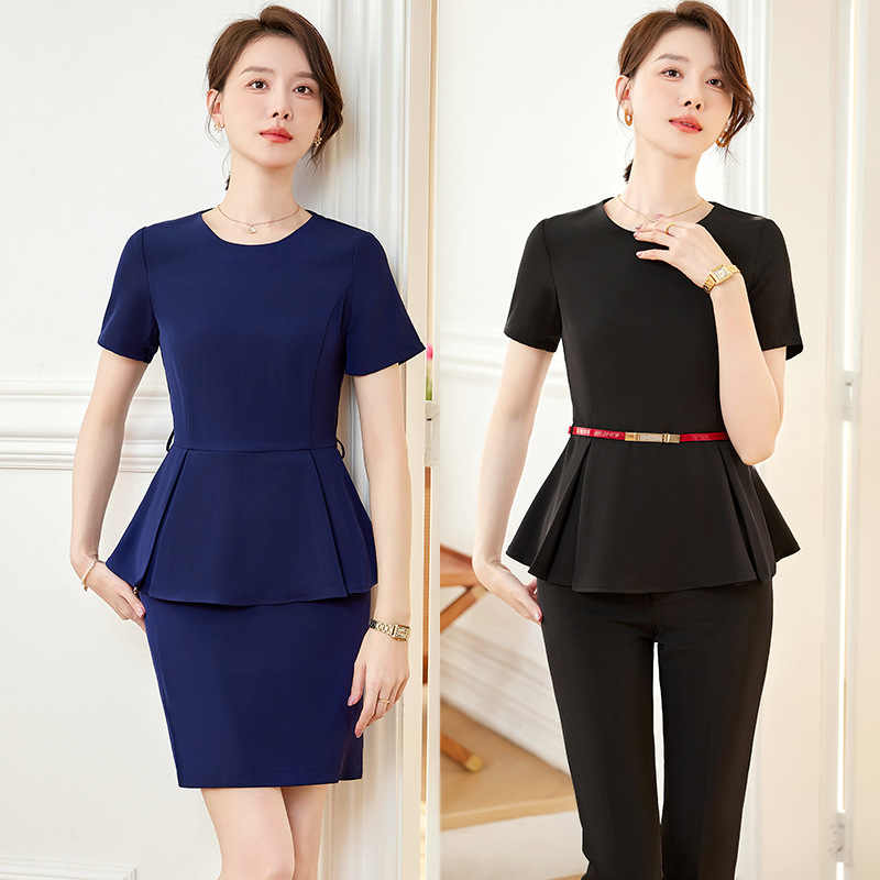 Toko perhiasan cantik baju kerja setelan lengan pendek baru musim panas pakaian pelayan meja depan hotel pakaian wanita profesional