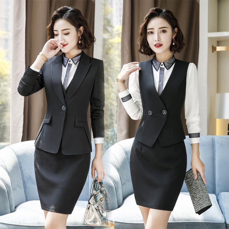 Gaun tiga potong rompi profesional pakaian kerja meja depan hotel musim panas wanita pakaian kerja etiket siswa pakaian latihan ahli kecantikan