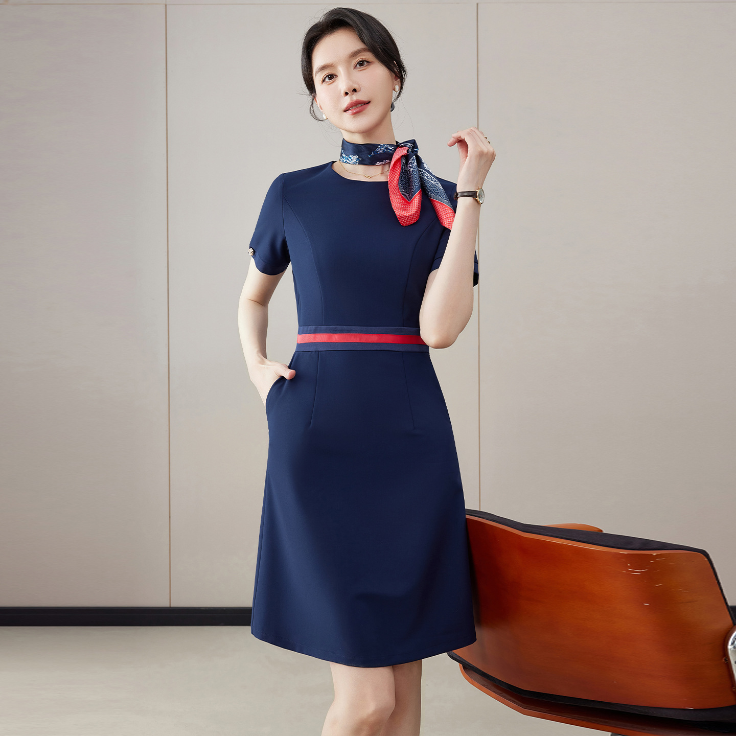 2023 musim semi dan musim panas pakaian bisnis gaun slim-fit pelangsing elegan hotel depan meja perhiasan toko kecantikan overall