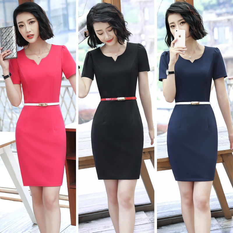 Gaun Pakaian Wanita Profesional Gaya Korea Model Baru Musim Panas Lintas Batas Pakaian Kerja Musim Panas Ahli Kecantikan Lengan Pendek Ukuran Besar Slim