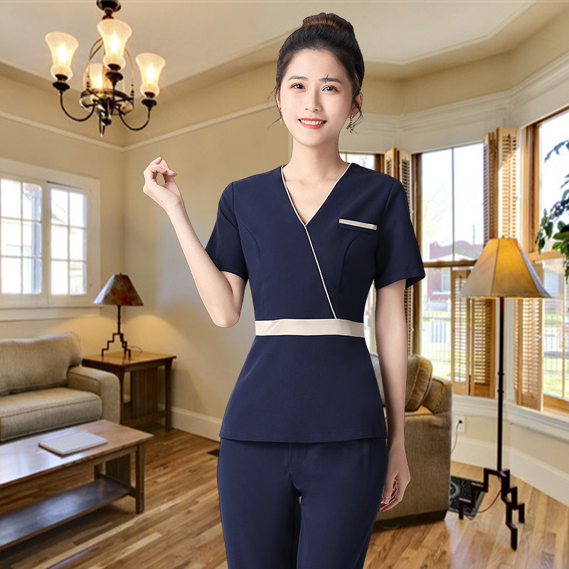 Baju kerja salon kecantikan busana wanita celana lengan pendek fashion baju kerja teknisi pijat SPA klub kesehatan temperamen