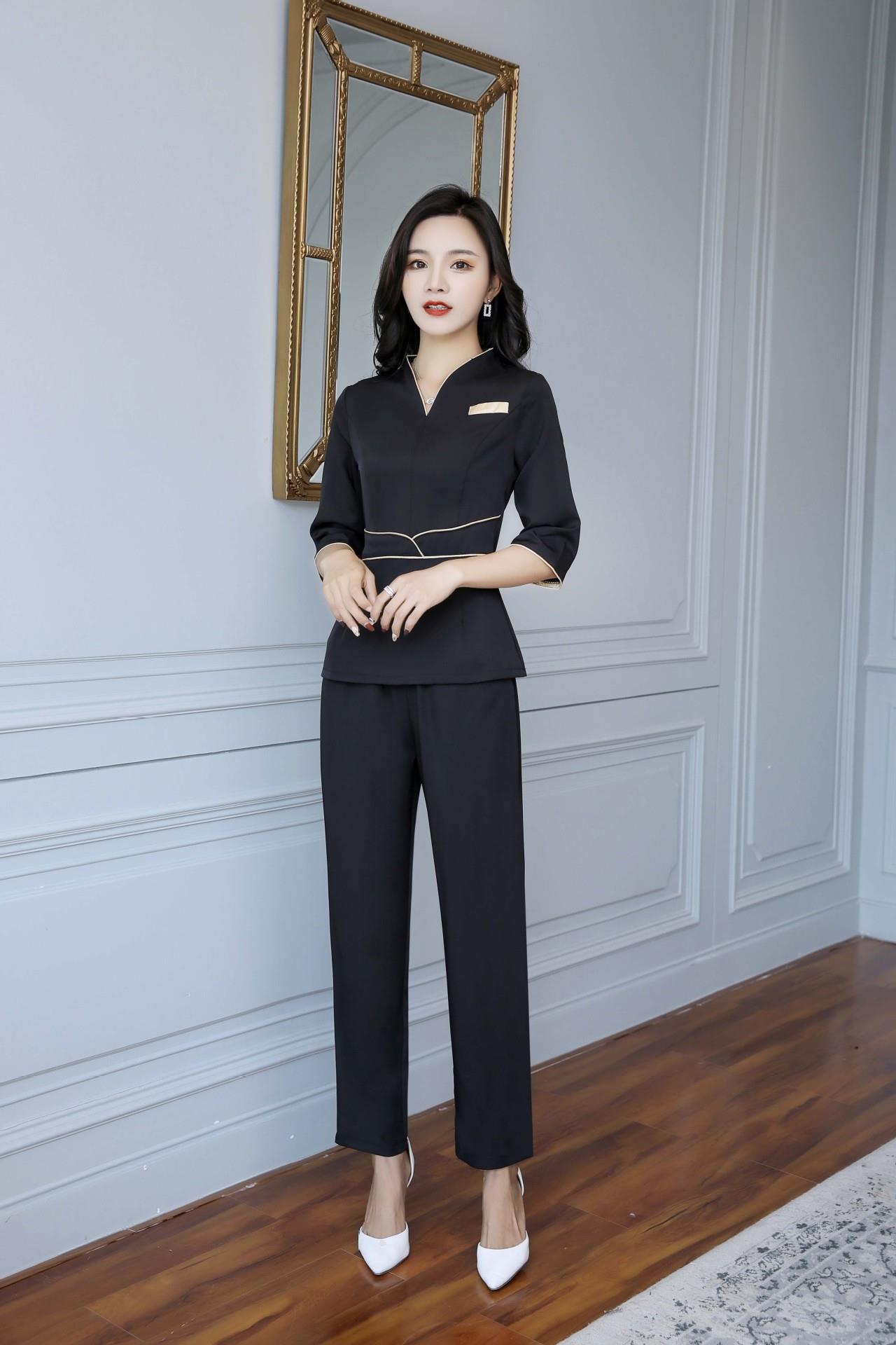 A9092 Pakaian Kerja Salon Kecantikan Model Baru Setelan Elegan Teknisi Mandi Kaki Spa Pusat Kesehatan Gaya Nasional Terlihat Langsing