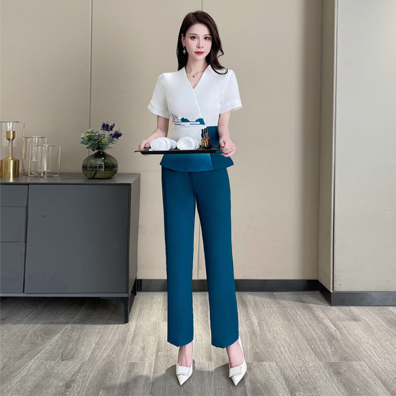 Baju kerja ahli kecantiian pakaian kerja wanita Cina pedikur pijat kaki teknisi pakaian kerja pelayan hotel JY-089 lengan pendek