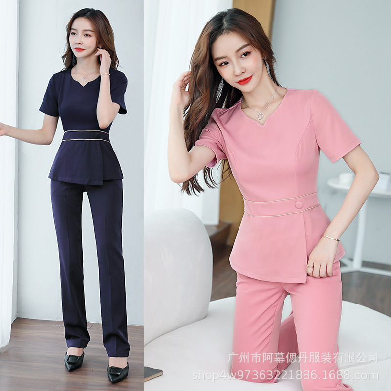 Pijat kaki teknisi pakaian kerja temperamen wanita baru musim panas salon kecantikan terapis kaki pijat kesehatan perawatan pijat kaki pakaian kerja setelan