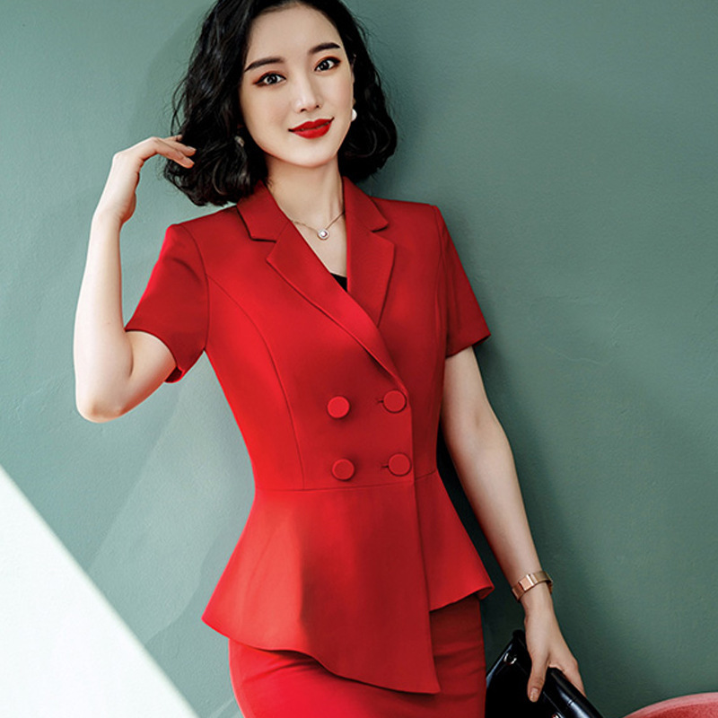 Setelan profesional setelan musim panas wanita setelan lengan pendek setelan wanita setelan merah overall ahli kecantikan rok wanita