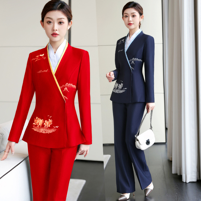 Kelas atas salon kecantikan tato ahli bordir artis pakaian kerja temperamen manajemen kulit pedikur perawatan kesehatan pakaian setelan wanita musim gugur dan musim dingin