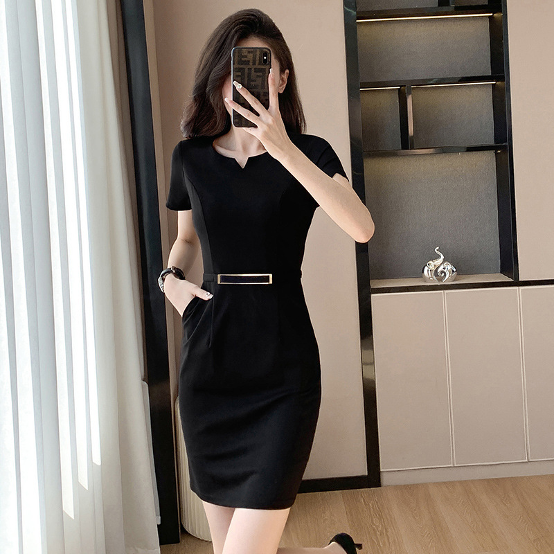 Gaun profesional 2024 pakaian wanita baru gaun formal elegan modis pakaian kerja ahli kecantikan gaun kerja lengan pendek