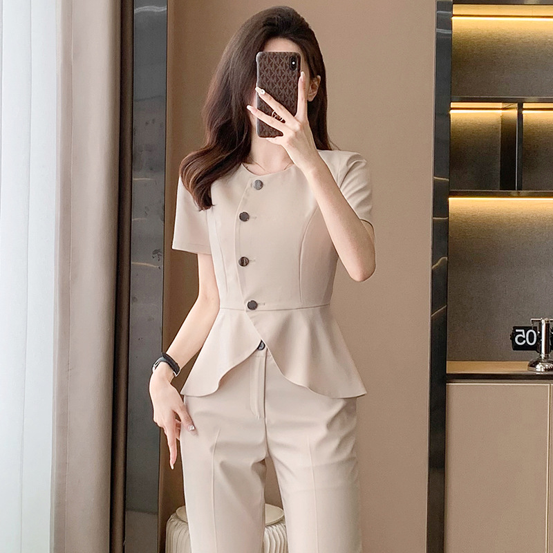 Setelan pakaian profesional kelas atas overall wanita musim panas lengan pendek mode pakaian formal hotel meja depan toko perhiasan ahli kecantikan