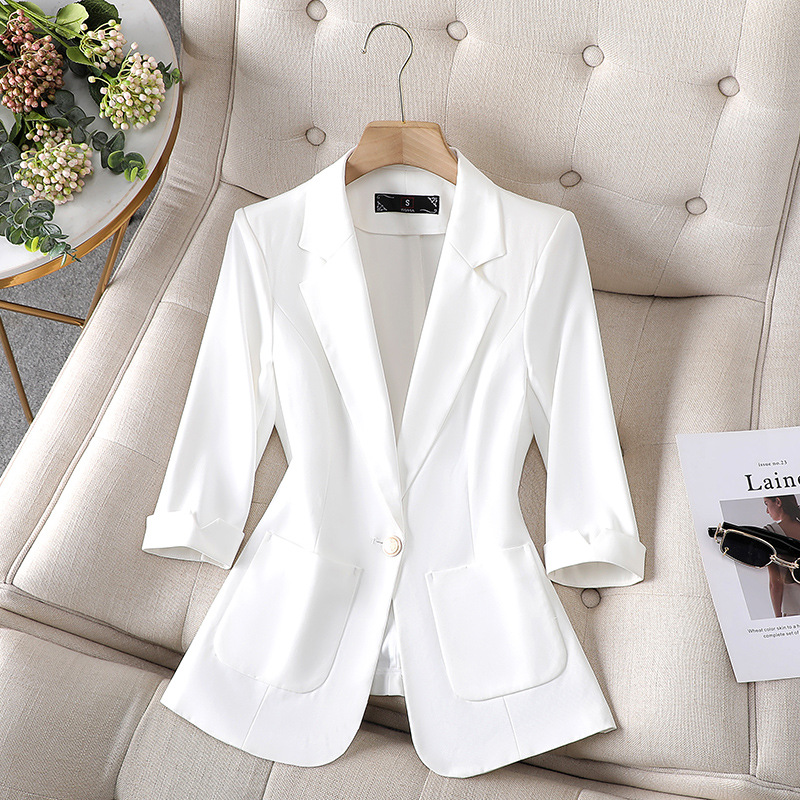 Setelan Jas Kerja Wanita Profesional Musim Panas 2025, Lengan Sedang, Warna Putih, untuk Kecantikan, Hotel, dan Pekerjaan Lainnya
