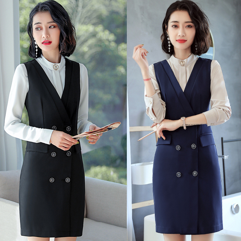 2018 musim gugur dan musim dingin gaun rompi wanita profesional panjang menengah pakaian kerja taman kanak-kanak perhiasan kecantikan