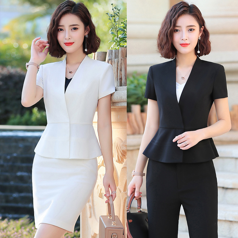 Baju setelan toko kecantikan musim panas lengan pendek gaun formal profesional baru pakaian kerja bisnis kelas atas komuter