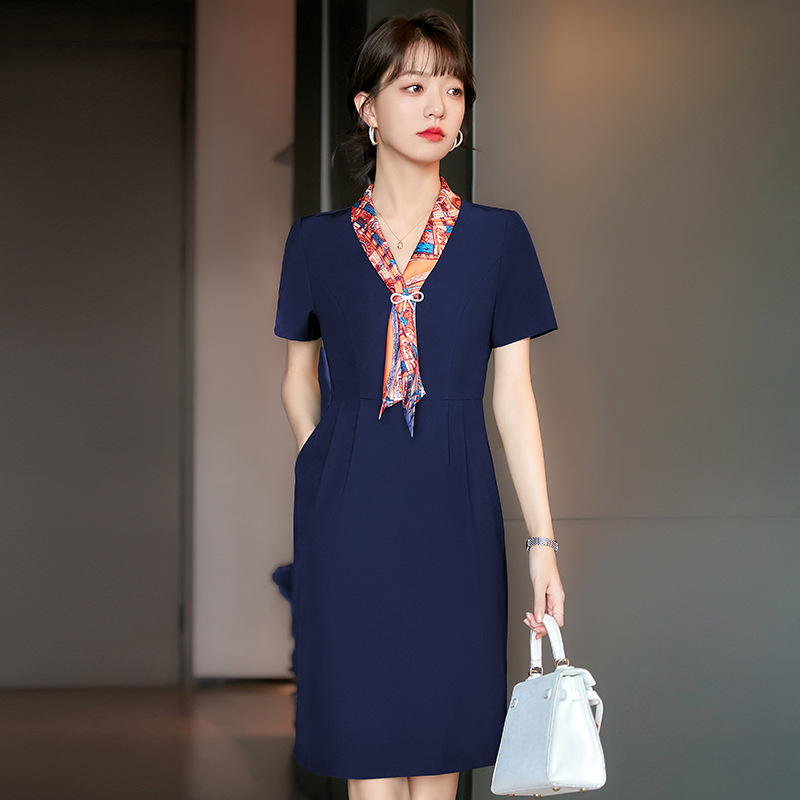 Setelan pakaian profesional setengah lengan musim semi dan musim panas hotel meja depan pakaian kerja konter toko emas ahli perhiasan toko baju kerja
