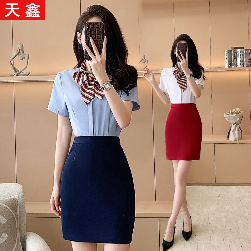Gaun profesional hotel wanita meja depan fashion temperamen kecantikan perhiasan host pakaian kerja formal rok lengan pendek