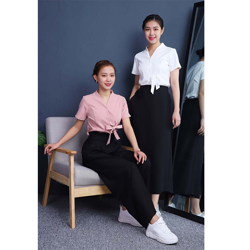 Setelan profesional toko mandi kaki wanita pakaian kerja hotel kemeja ahli kecantikan temperamen ktv baju kerja toko perhiasan