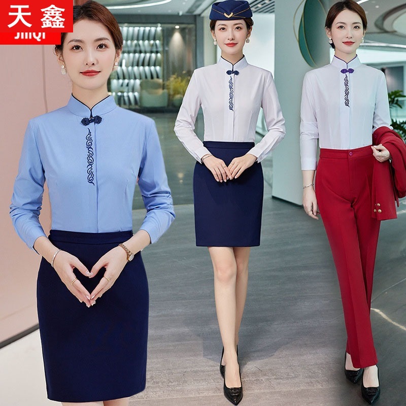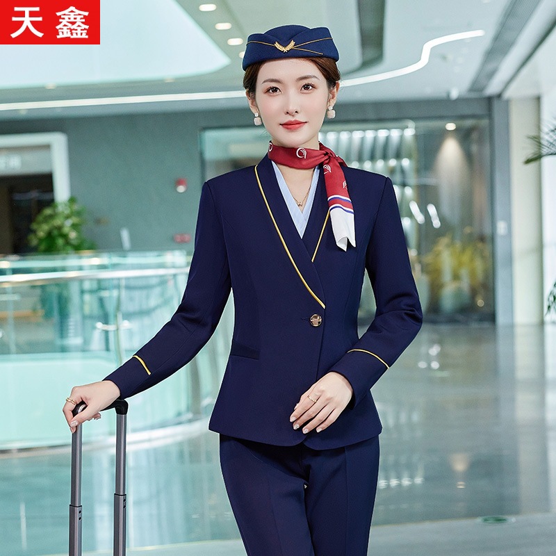 Seragam pramugari setelan pakaian bisnis fashion wanita rel kecepatan tinggi pramugari ahli kecantikan hotel meja depan baju kerja OL