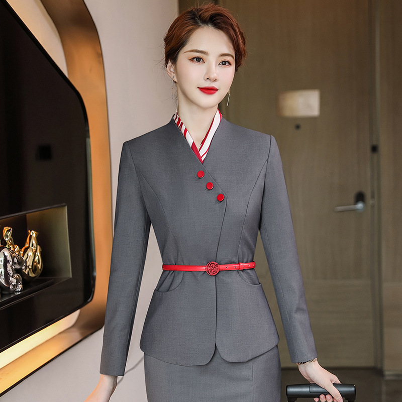 Seragam pramugari rel kecepatan tinggi setelan rompi pramugari musim gugur dan musim dingin perguruan tinggi pakaian kerja meja depan ahli kecantikan hotel