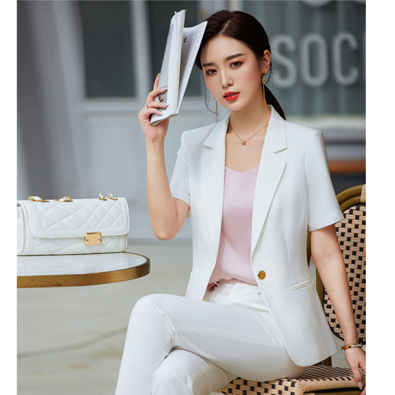 Pakaian bisnis 2023 jaket setelan kecil musim semi dan musim panas wanita gaun wanita set dua potong pakaian kerja setengah lengan kecantikan temperamen