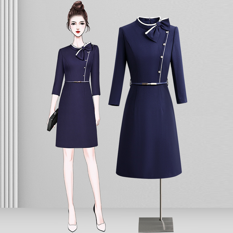 2023 musim gugur dan musim dingin pakaian wanita profesional kelas atas modis pinggang pelangsing temperamen gaun lengan panjang perhiasan ahli kecantikan pakaian kerja