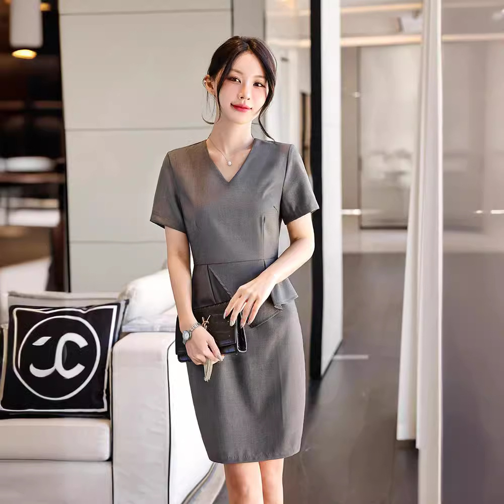 Pakaian bisnis Hotel wanita grosir 2024 gaun kerah V wanita profesional gaya ol baru pakaian kerja ahli kecantikan Nanyou