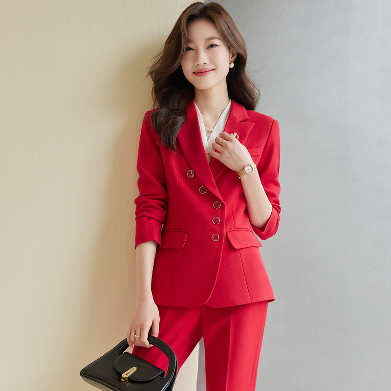 2021 musim gugur dan musim dingin pakaian bisnis baru wanita ramping pinggang temperamen pramugari seragam perhiasan ahli kecantikan setelan logo