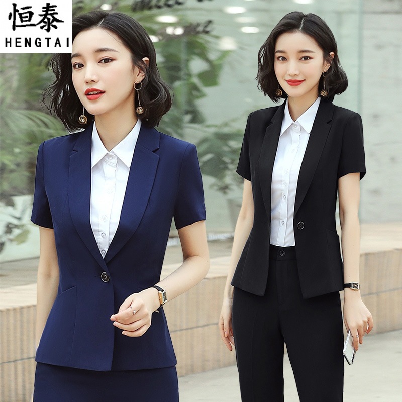 Setelan kecil lengan pendek setelan profesional wanita pakaian kerja manajer toko kecantikan hitam musim panas pakaian kerja lengan pendek seragam manajer hotel tipis