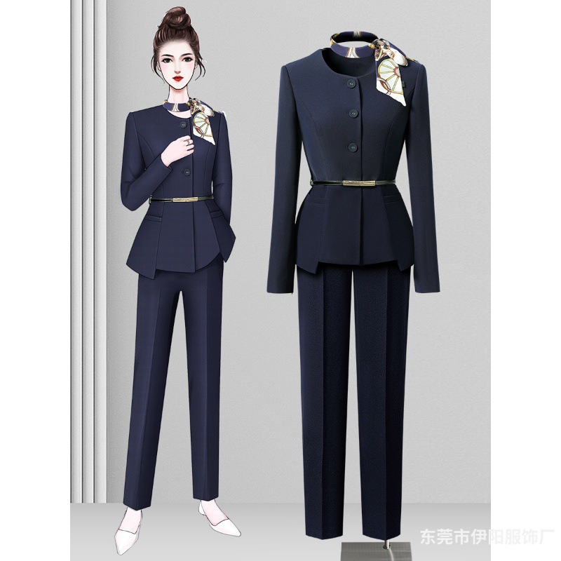 Gaun profesional musim gugur dan musim dingin elegan wanita pakaian formal hotel meja depan pakaian formal ahli kecantikan pakaian kerja wanita grosir pabrik