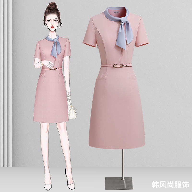 Gaun profesional musim panas mode elegan merah muda lengan pendek pakaian kerja meja depan pakaian kerja ahli kecantikan salon kecantikan wanita