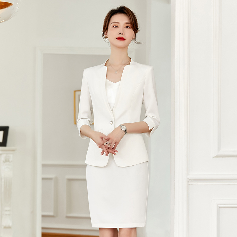 Setelan profesional pakaian kerja kecantikan wanita pakaian kerja ahli kecantikan hotel wanita setelan jas putih gaun bisnis