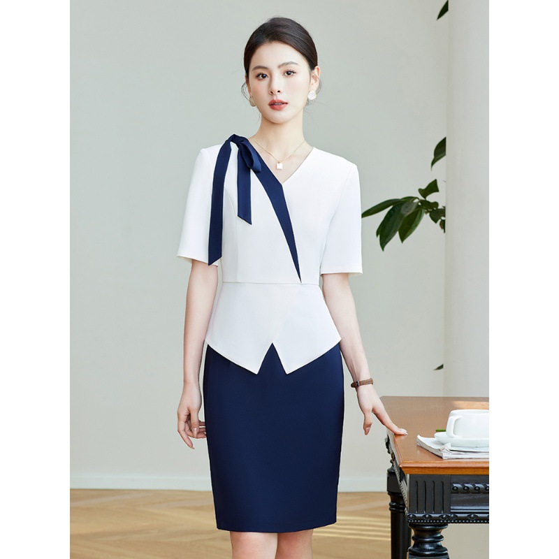 Baju kerja salon kecantikan baru musim semi dan musim panas 2023 baju kerja wanita slim fit ramping profesional gaun hip