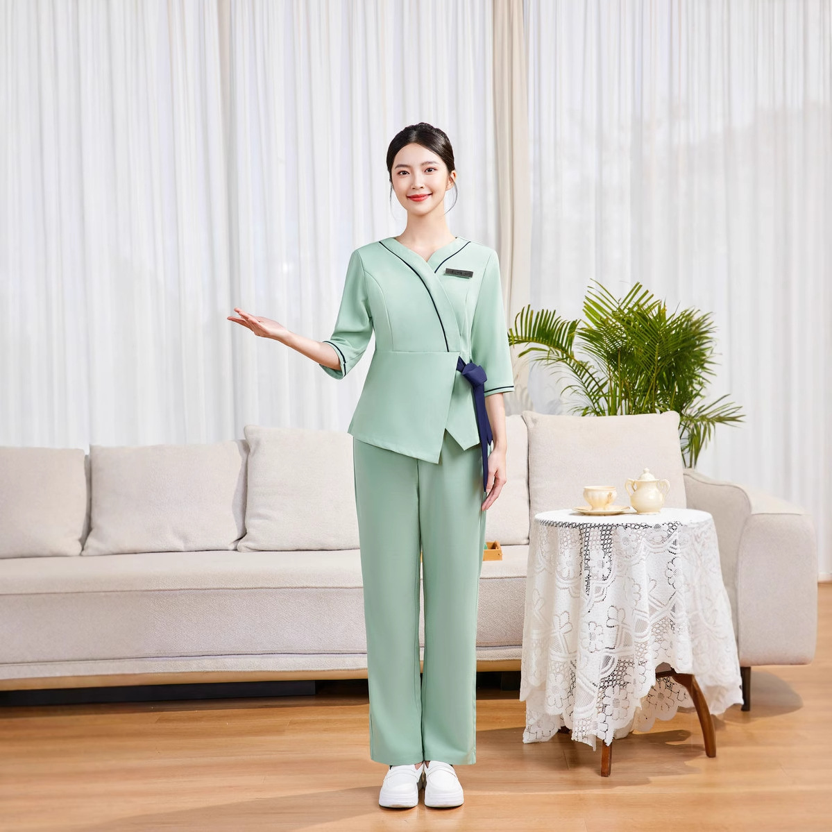 Pakaian Kerja Ahli Kecantikan Kelas Atas Musim Panas Pakaian Kerja Wanita Mandi Kaki Elegan Model Tipis Lengan Pendek Pakaian Kerja Salon Kecantikan Spa