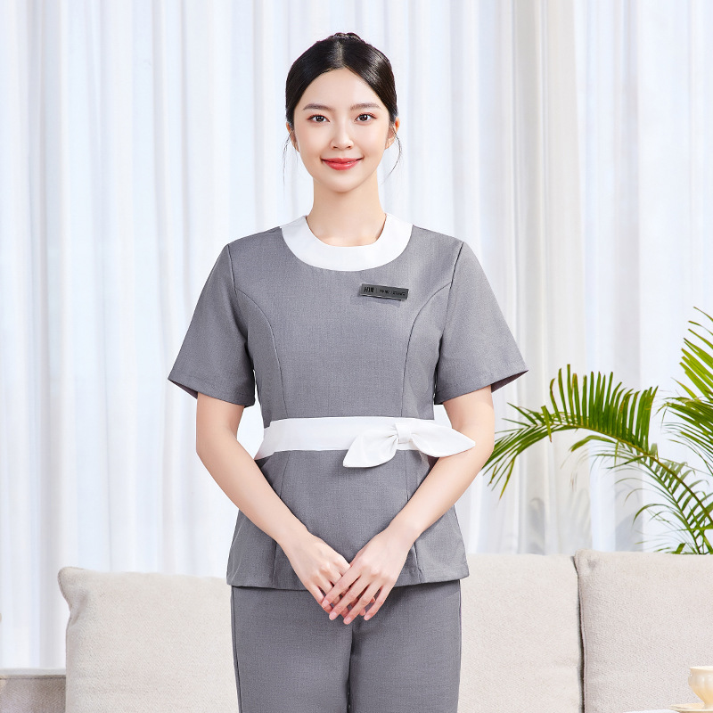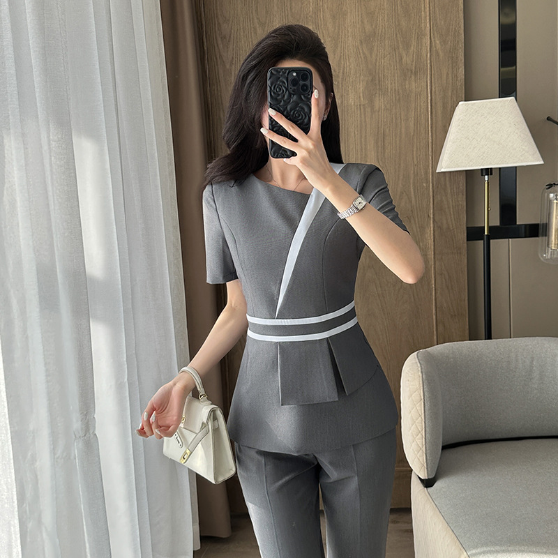 Pakaian Kerja Lengan Pendek Ahli Kecantikan Model Baru Musim Panas 2025 Pakaian Kerja Wanita Pakaian Kerja Meja Depan Set Pakaian Kerja Staf Hotel