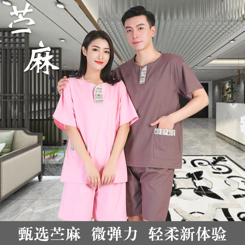 Pakaian mandi rami elastis kelas tinggi 2024 pakaian sauna sarung tangan pakaian mandi keringat pakaian uap telinga memetik telinga perawatan kesehatan pedikur pakaian kecantikan