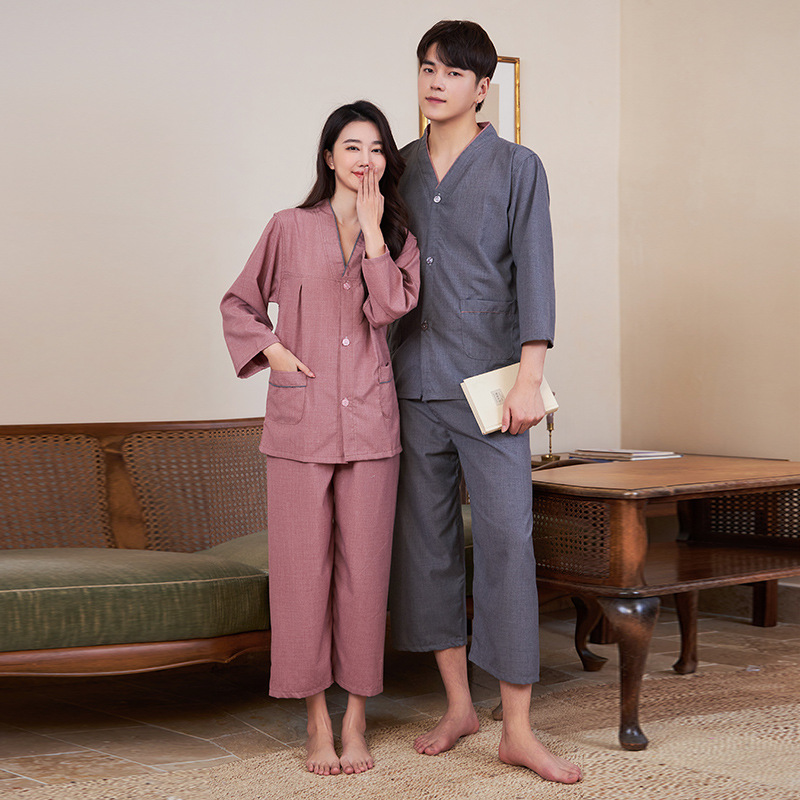 Gong pakaian katun moksibusi pria wanita, pakaian sauna celana panjang lengan panjang terbuka, pakaian pasangan wanita lembut dan nyaman