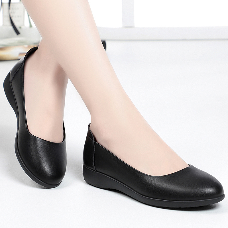 Stewardess sepatu perawatan kecantikan nyaman bersirkulasi sol lembut sepatu kerja profesional sepatu wanita lapis tunggal musim semi dan musim gugur sepatu kulit paruh baya dan lansia