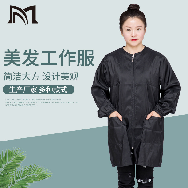 Ritsleting penata rambut baju kerja celemek lengan panjang kain hitam salon rambut toko tukang cukur baju kerja teknisi pencelupan panas