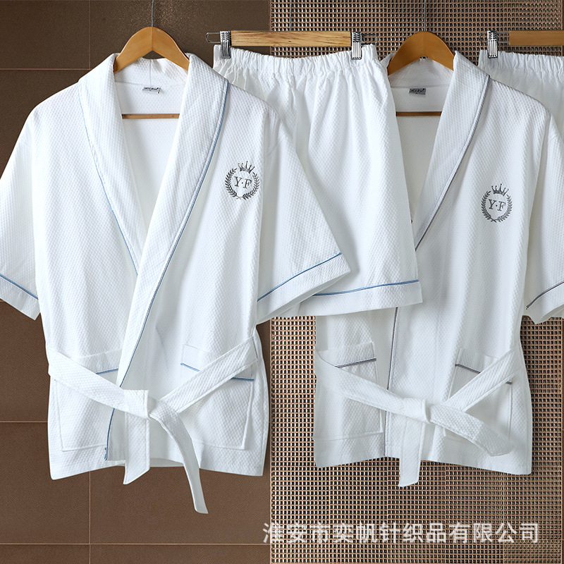 Piyama katun murni, piyama baju sauna salon kecantikan musim semi dan musim panas, jubah mandi katun murni pasangan, pakaian uap keringat wafel katun murni
