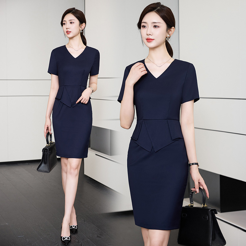 Gaun profesional ukuran besar wanita musim panas 2020 baru gaya Korea lengan pendek toko perhiasan ahli kecantikan rok pinggul
