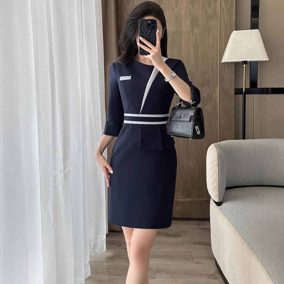 Gaun Profesional Lengan Tujuh Perempat Pakaian Kerja Khusus Ahli Kecantikan Musim Semi dan Musim Panas Rok Pakaian Kerja Toko Perhiasan Salon Kecantikan Kelas Atas