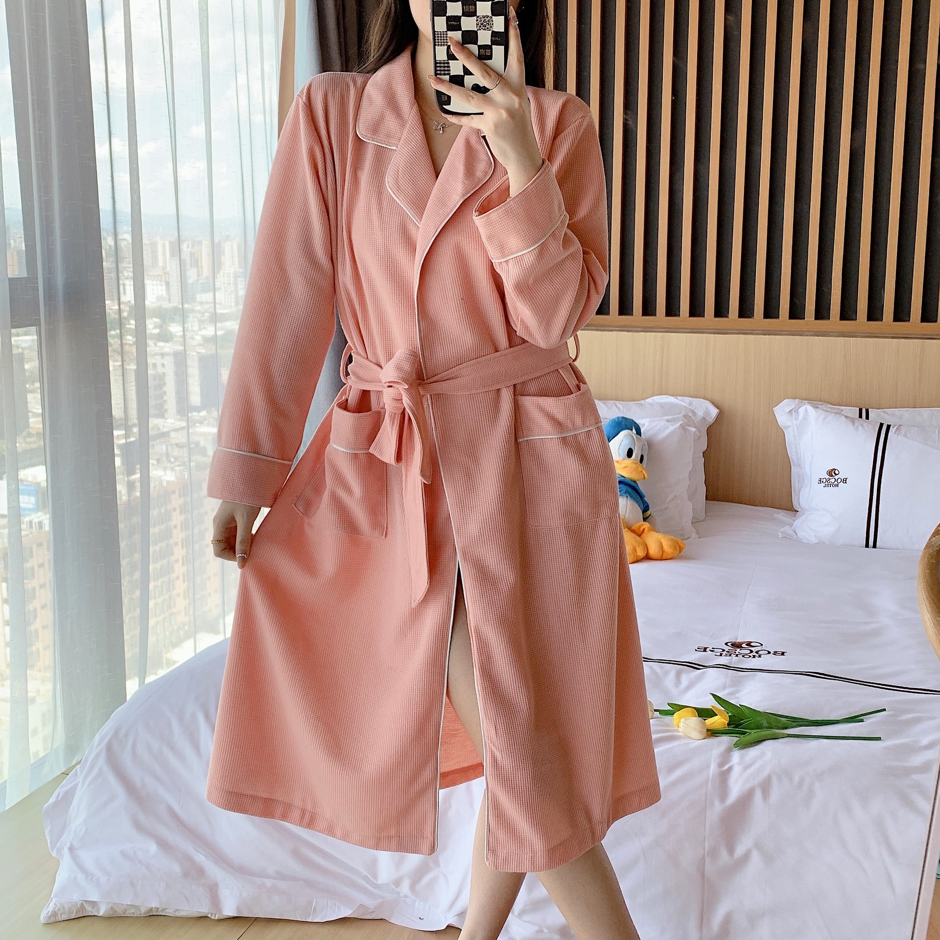 Piyama Waffle pakaian mandi wanita, baju sauna lengan panjang gaya hotel warna polos untuk berenang salon kecantikan musim gugur dan musim dingin