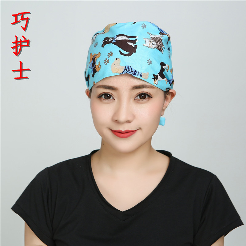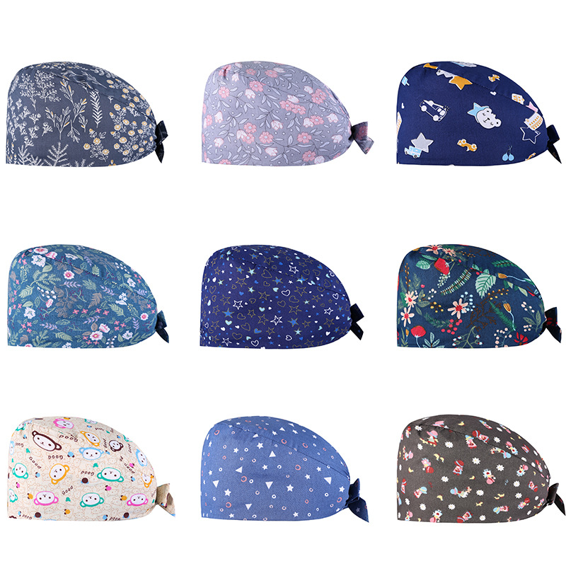 Dicetak topi bedah wanita katun murni topi ruang operasi Pria dokter anestesi oral topi perawat ahli kecantikan topi kerja