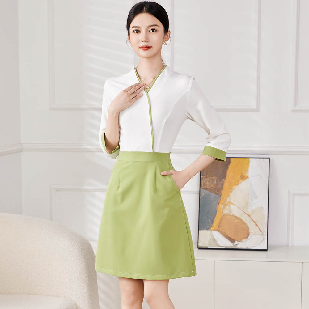 Gaun profesional lengan pendek Wanita Mode musim panas kecantikan hotel medis temperament pakaian kerja pemandu belanja toko emas meja depan