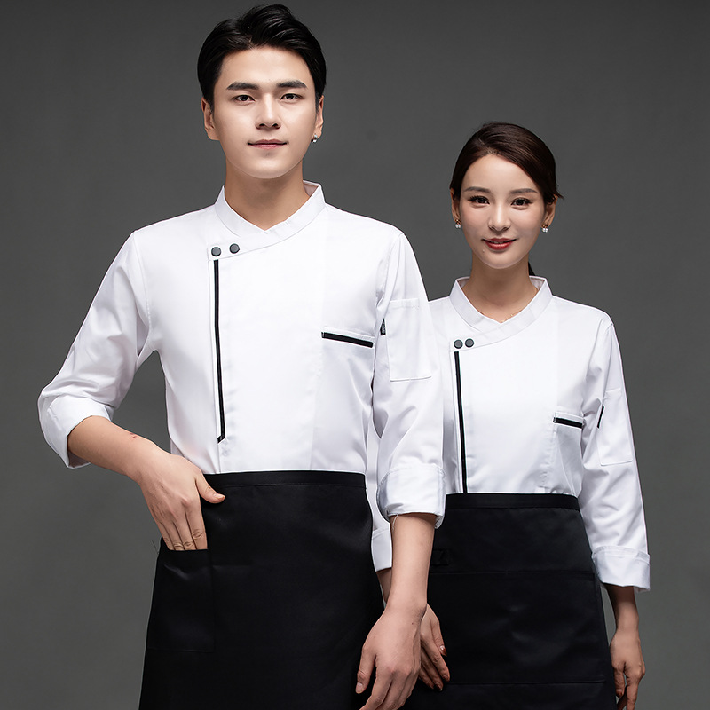 Baju kerja koki hotel makan pria dan wanita, pakaian dapur memanggang restoran kantin lengan panjang musim gugur dan musim dingin