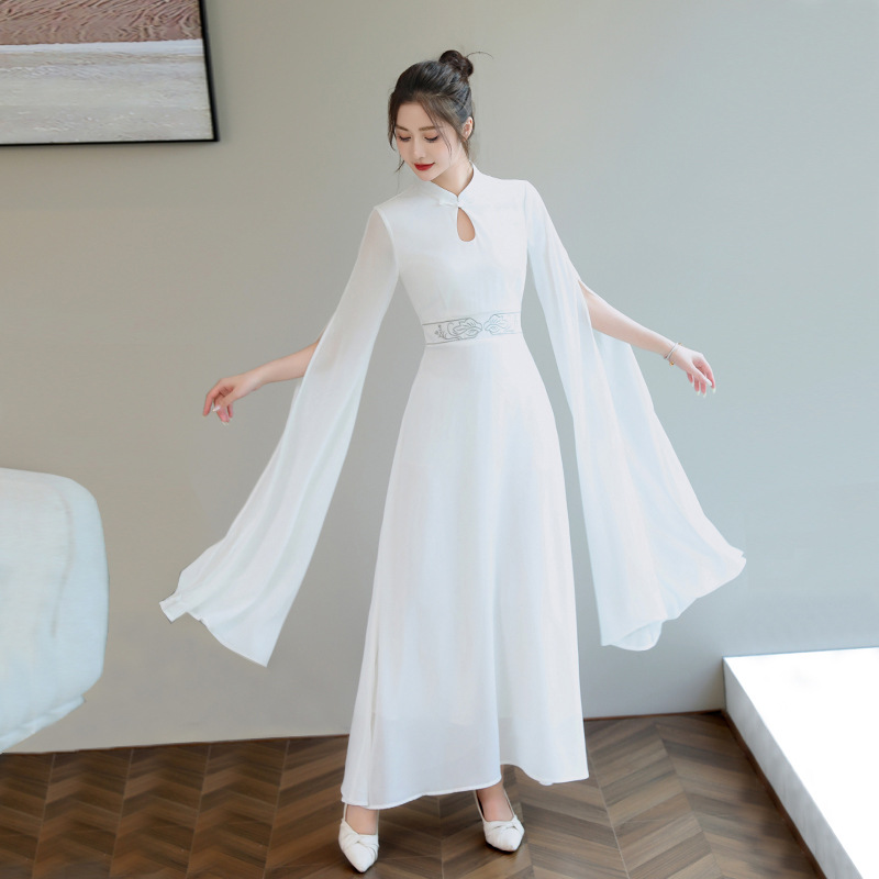 Baju minum teh wanita retro Zen, pakaian kerja wanita, gaun peri cheongsam ditingkatkan, pakaian teh artistik 2020