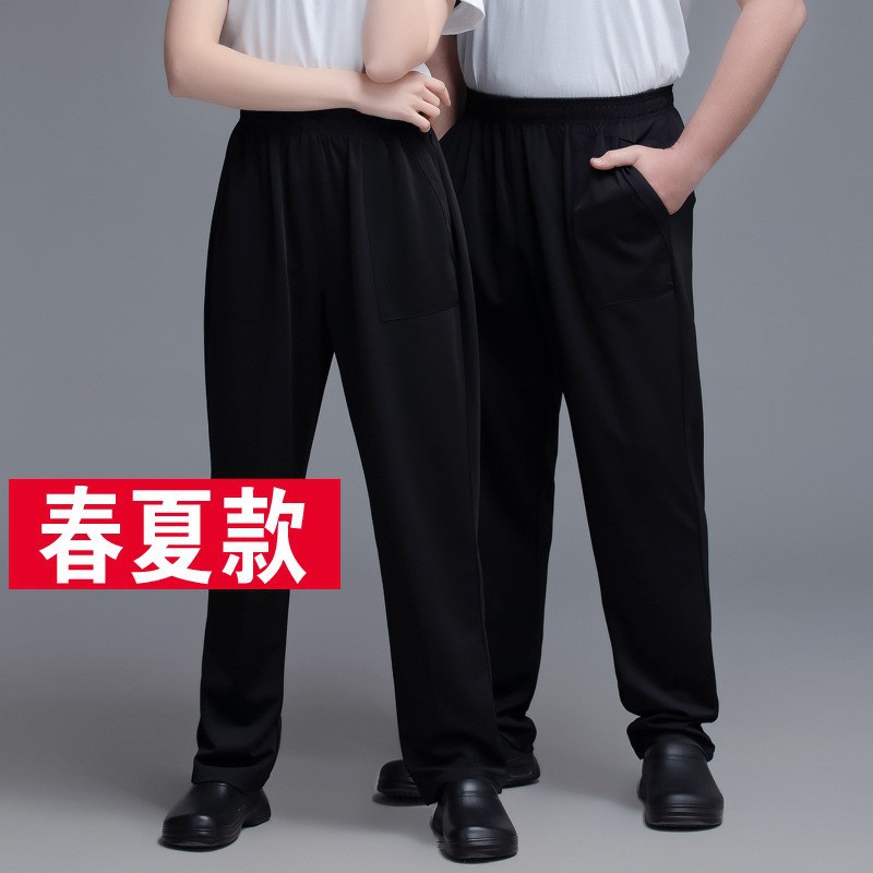 Celana kerja koki kain ketat nyaman Pria Wanita Celana pembersih celana hitam pelayan dapur makan penuh elastis
